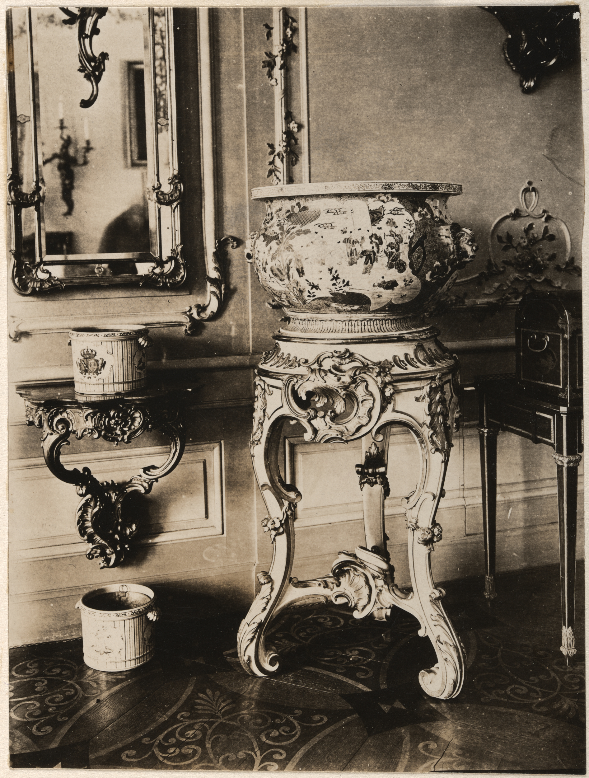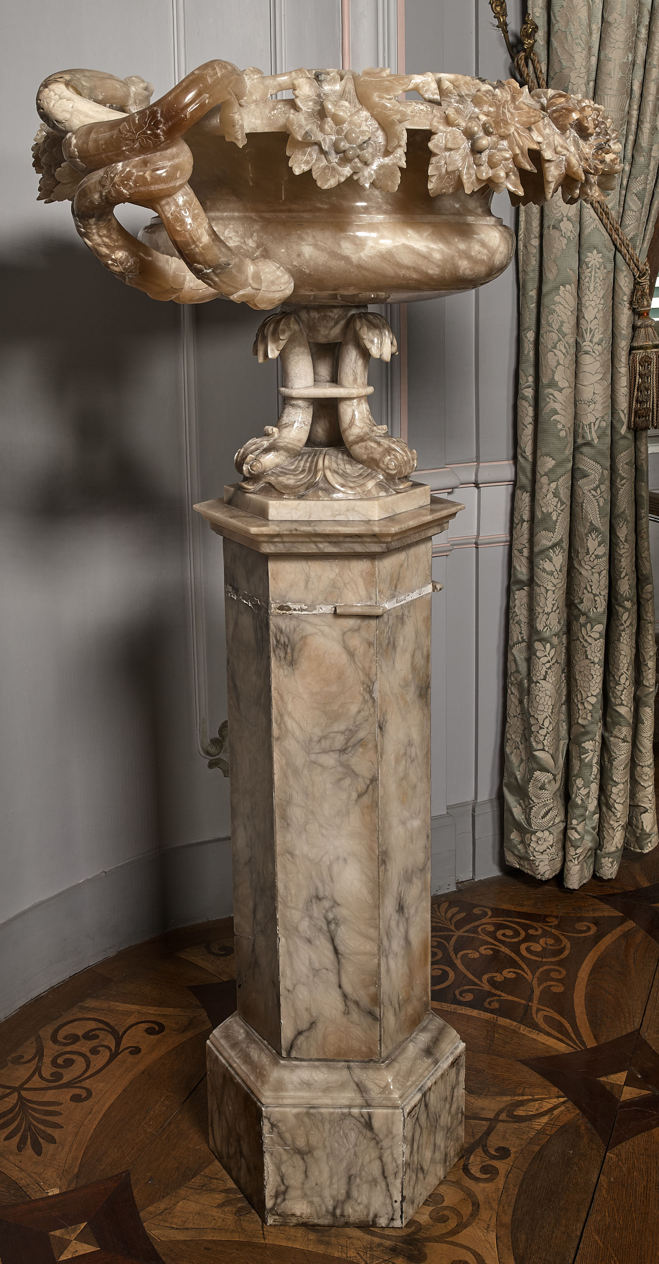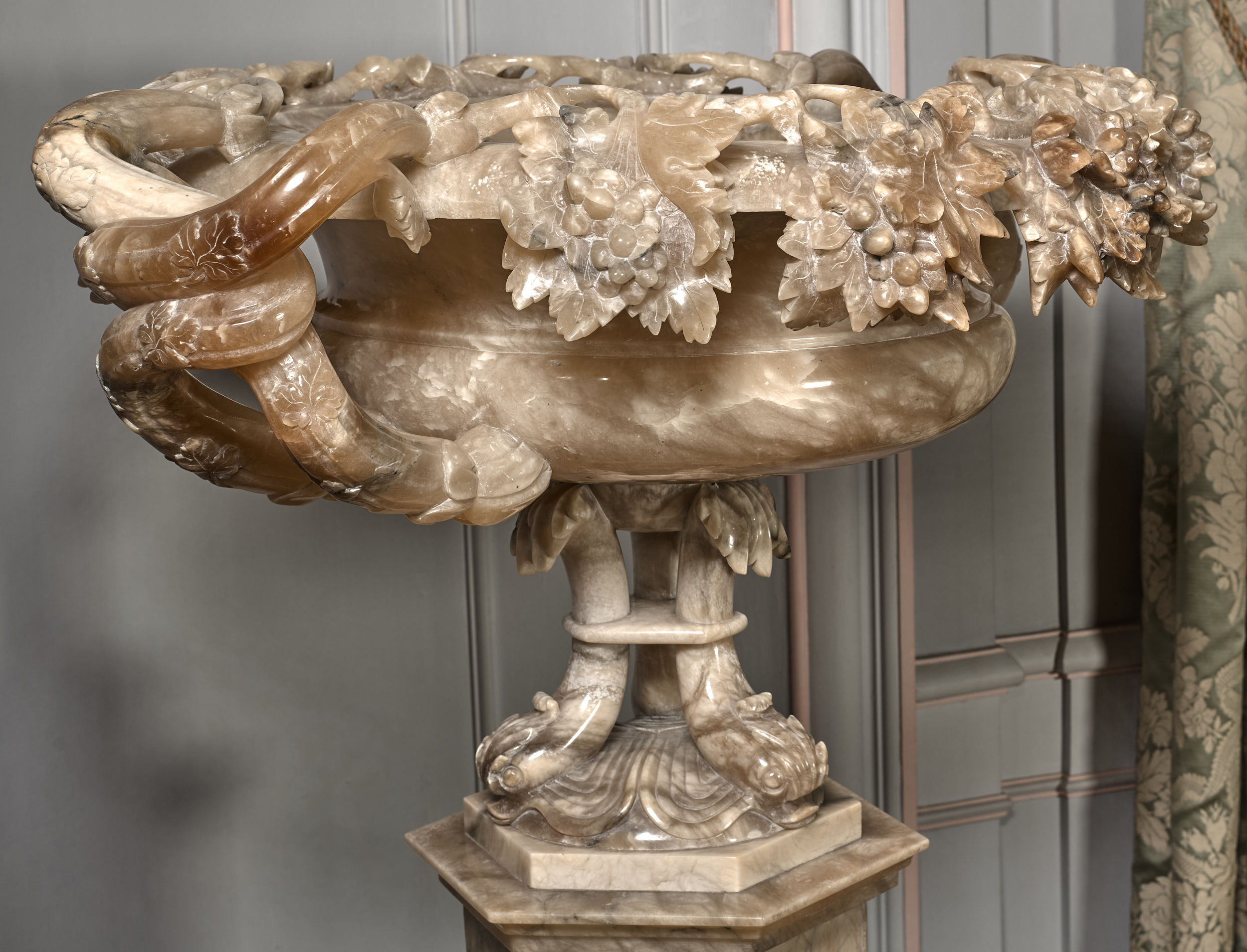 Wazon bogato rzeźbiony motywami roślinnymi