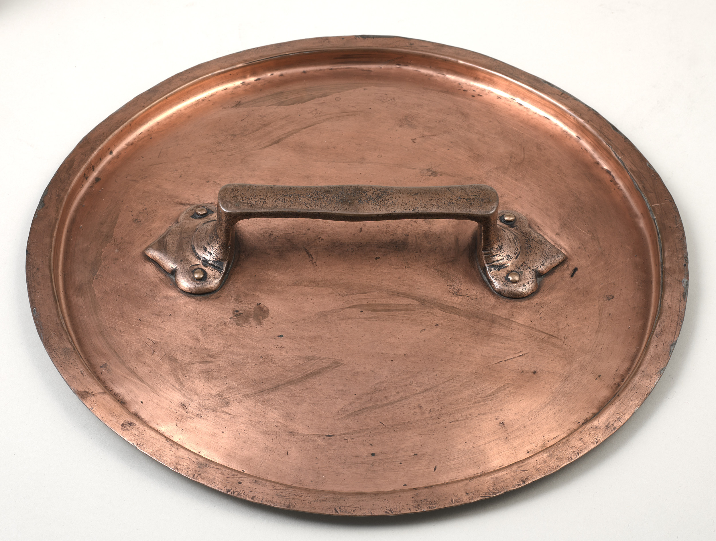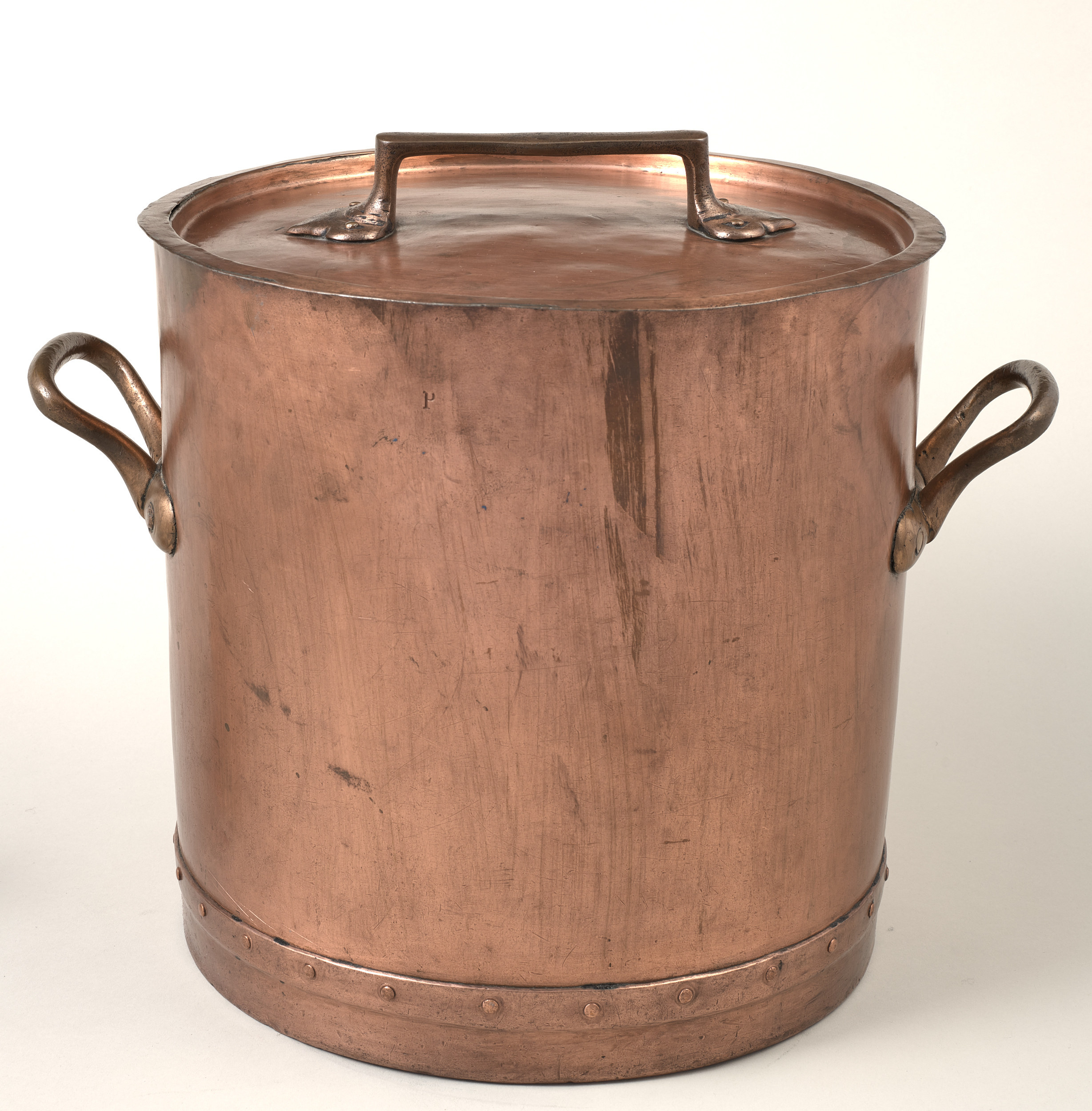 Garnek  (saganek) z blachy miedzianej z kolekcji Potockich, z przełomu XIX na XX wiek. Saganek w kształcie dość wysokiego walca , z pokrywą i dwoma uchwytami, też miedzianymi, umieszczonymi po obu stronach ,na osi garnka, w jednej trzeciej jego wysokości od góry. Uchwyty kabłąkowate,, profilowane lekko wygięte do góry . Dno naczynia wzmocnione dodatkową blachą w kształcie obręczy, dość gęsto przynitowane do naczynia. Pokrywka płaska, wgłębna, z podniesionym brzegiem, dopasowana do kształtu saganka. Pośrodku posiada dość duży prostokątny uchwyt, przymocowany do pokrywy ozdobnymi nitami. Przy górnej krawędzi naczynia wybita litera „P” (wskazuje na pochodzenie z czasów Potockich), a pod jednym z uchwytów liczba „30”. Garnek wewnątrz i pokrywa od spodu cynowana. Saganek eksponowany jest na Korytarzu Wschodnim II p, gdzie zgromadzone są wyroby ( naczynia ) z miedzi, będące w znacznej części pozostałościami po nieistniejących kuchniach zamkowych.