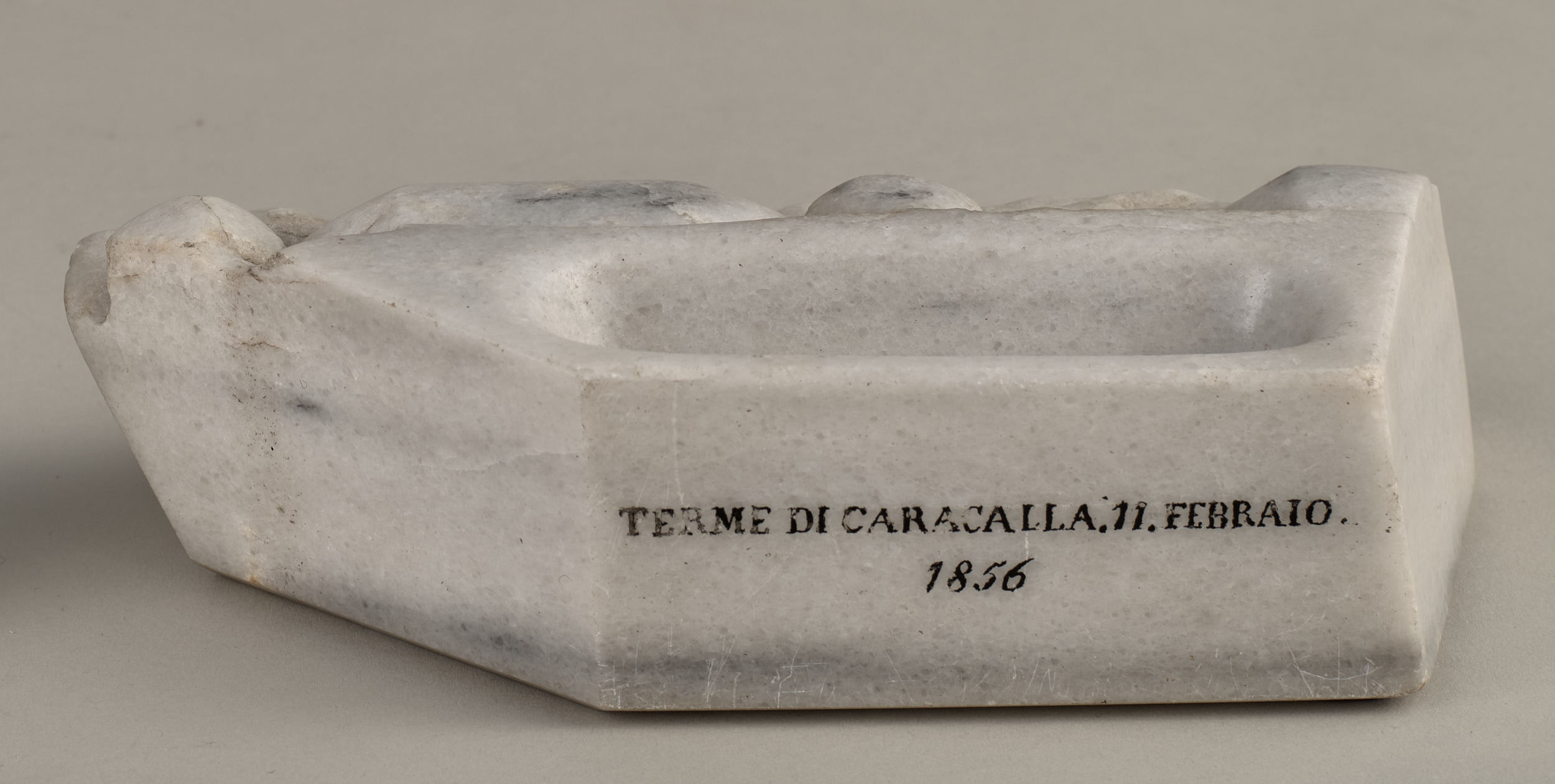 Marmurowy fragment reliefu z Term Karakalli w Rzymie, z rzeźbionym szlakiem ornamentalnym, oznaczony jest nowożytnym napisem z datą 11 luty 1856. Stanowi on rodzaj pamiątki starożytności przywiezionej z podróży do Włoch przez kogoś z rodziny Potockich, właścicieli łańcuckiego zamku, być może przez Alfreda Józefa Potockiego (1822 – 1889), późniejszego drugiego ordynata łańcuckiego. Termy Karakalli w Rzymie budowane były od 206r. za panowania Septymiusza Sewera, oddano je do użytku w 217 r. za panowania Karakalli. Były to największe i najwspanialsze rzymskie łaźnie publiczne. Wnętrza term były bogato zdobione i wyposażone w dzieła sztuki m.in. rzeźby. Zachowały się w stanie ruiny. Odłam z Term Karakalli wymieniony jest w inwentarzu łańcuckiego zamku z 1862 r. w Galerii Rzeźb, gdzie niezmiennie eksponowany jest do dziś.
